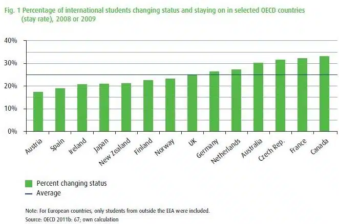 - the propensity of international students to stay in the country of study after graduation;