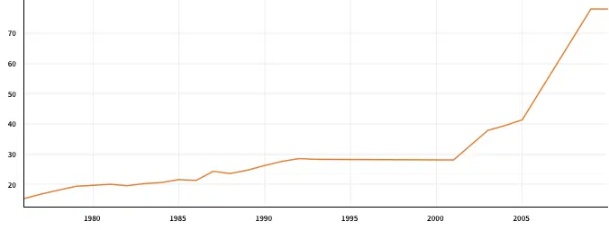 The overall tertiary enrolment ratio passed 78% in 2009, the last year for which such data is available. The graph below, from Quandl, shows the general upswing beginning in 1975.