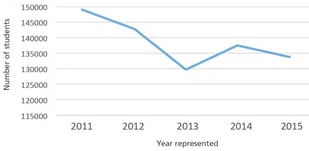 Languages Canada member enrolment by student numbers, 2011-2015. Source: Languages Canada