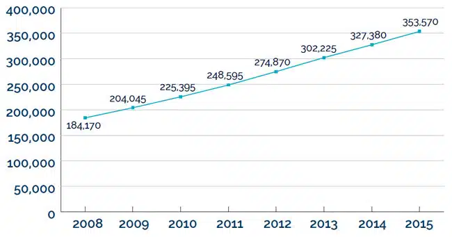 Canada became the latest major study destination to report on international enrolment trends this week with the release of the annual A World of Learning report from the Canadian Bureau for International Education (CBIE). The 2016 edition of A World of Learning: Canada’s Performance and Potential in International Education reports that there were 353,570 international students in Canada in 2015. This represents year-over-year growth of 8%, and echoes the recent-year trend reported in the US of slowing growth for the year. We should note that these statistics are based on Canadian immigration data – that is, on a count of those students holding a study permit for extended studies in Canada. Corresponding data from Languages Canada indicates that there were an additional 90,000 international students in Canada for shorter-term language studies in 2015, suggesting that the total head count for the year was closer to 450,000 students. More broadly, the number of foreign students in Canada grew by 92% between 2008 and 2015. Roughly 75% of the students in the CBIE count are now enrolled at the post-secondary level, with another 16% in secondary studies or lower. international-student-enrolment-in-canada-all-levels-of-study-2008-2015 International student enrolment in Canada, all levels of study, 2008-2015. Source: CBIE As is the case for many leading study destinations, diversity remains an issue for Canadian educators. More than 60% of all international students in Canada come from five sending markets: China, India, France, South Korea, and the US - with the US supplanting Saudi Arabia for the number five spot this year. As the following chart reflects, nearly two-thirds come from Asia, and almost half from East Asia alone. regional-distribution-of-canadas-international-student-enrolment-2015 Regional distribution of Canada’s international student enrolment, 2015. Source: CBIE. And as we also saw in 2015, China and India continue to drive most of the overall enrolment growth for Canadian institutions and schools. Year-over-year comparisons - showing growth or decline by country for 2015 - are reflected in the following chart of Canada’s top 12 sending markets. enrolment-levels-for-top-12-sending-markets-2014-and-2015 Enrolment levels for top 12 sending markets, 2014 and 2015. Source: CBIE