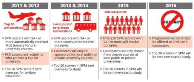 The Minister’s remarks reflect the perspective of a government that has pulled back on scholarships for study abroad in recent years. The number of prestigious Public Service Department (PSD) scholarships - awards given to the top-performing students in the country - has declined sharply since 2013. Some scholarships remain available for those with the best scores on the Sijil Pelajaran Malaysia examination. The SPM, also known as the Malaysian Certificate of Education, is a national exam taken by all fifth-year Malaysian secondary students. It is roughly equivalent to the O-Level in the British system, or Grade 11 in the US K-12 system.