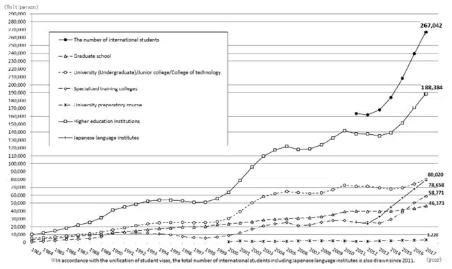 For the fifth consecutive year, international student numbers have grown in Japan. The latest statistics from the Japan Student Services Organization (JASSO) indicate that as of May 2017, 267,040 foreign students were studying in Japan, an increase of 11.6% over 2016.