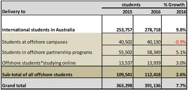 Australia: Offshore delivery growing but more slowly than in-country enrolments