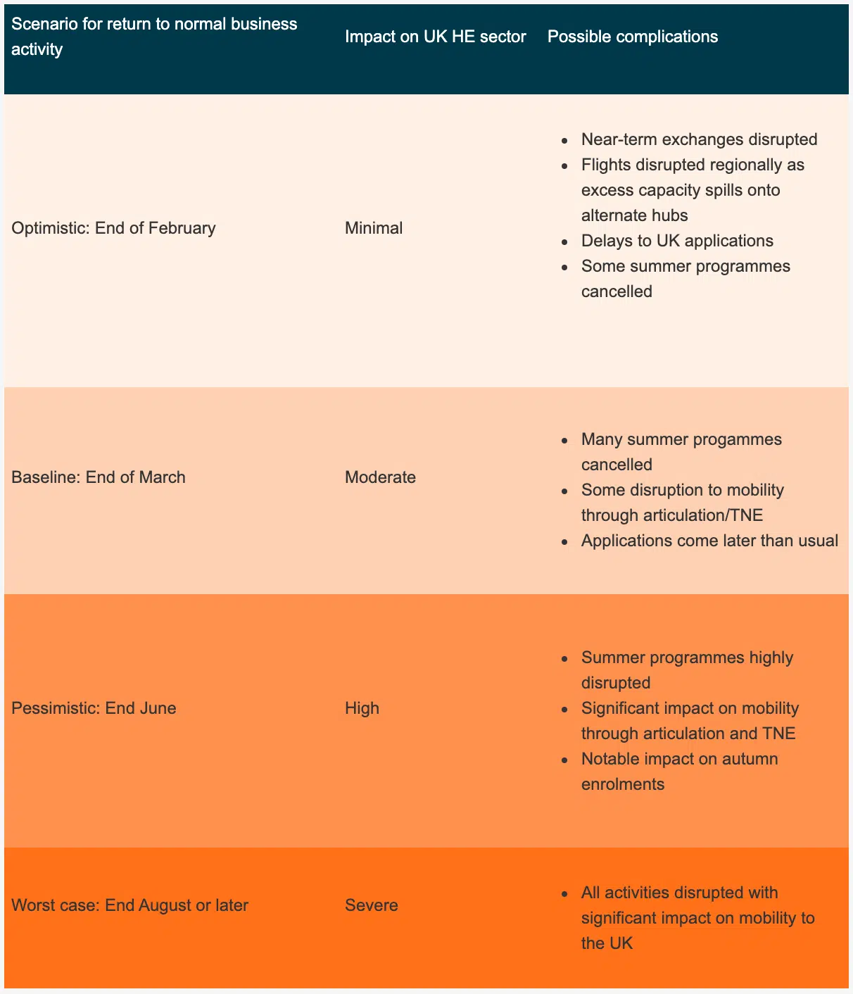 - Disruption in marketing and recruitment activity on the part of agents and foreign educators because of the outbreak.