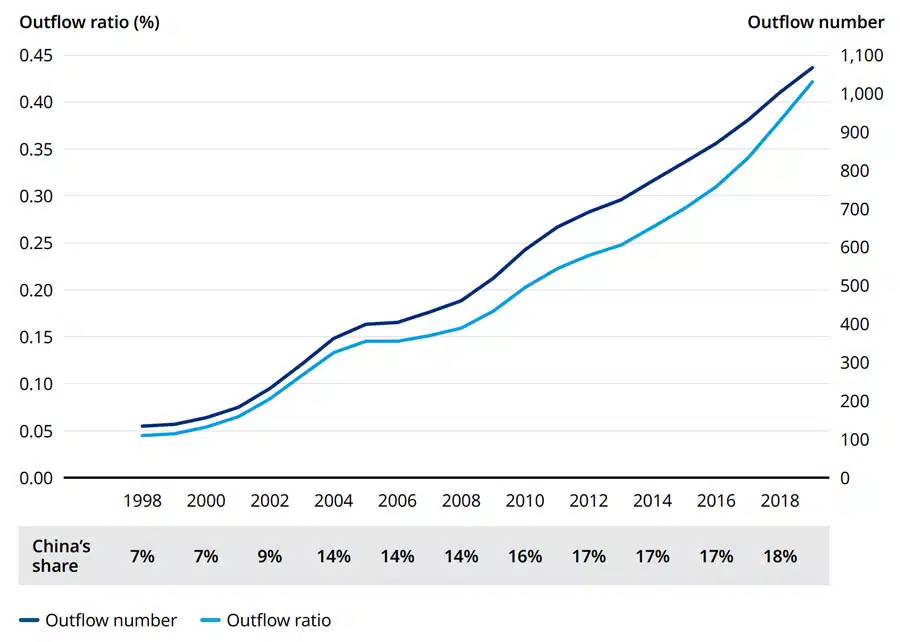 China has been an important driver of global growth in international student mobility for decades. As of 2020, Chinese students continued to account for a significant share of foreign enrolment in the world's top study destinations – ranging from roughly a quarter of all international students in Canada to nearly 40% of the foreign enrolment base in both the United States and Australia.