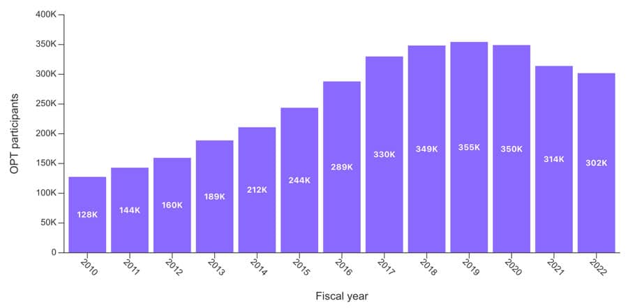 A new resource, The OPT Observatory, provides a careful analysis of the available data to illustrate that growth, along with a number of other key indicators for the programme. It finds, for example, that the number of OPT participants grew from roughly 128,000 in 2010 to just over 300,000 by 2022.
