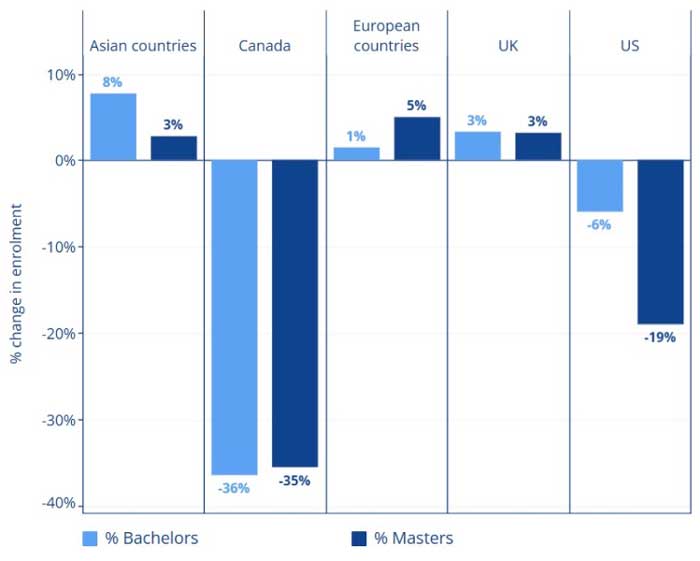 Canada and the US are losing international student enrolments to Europe and Asia