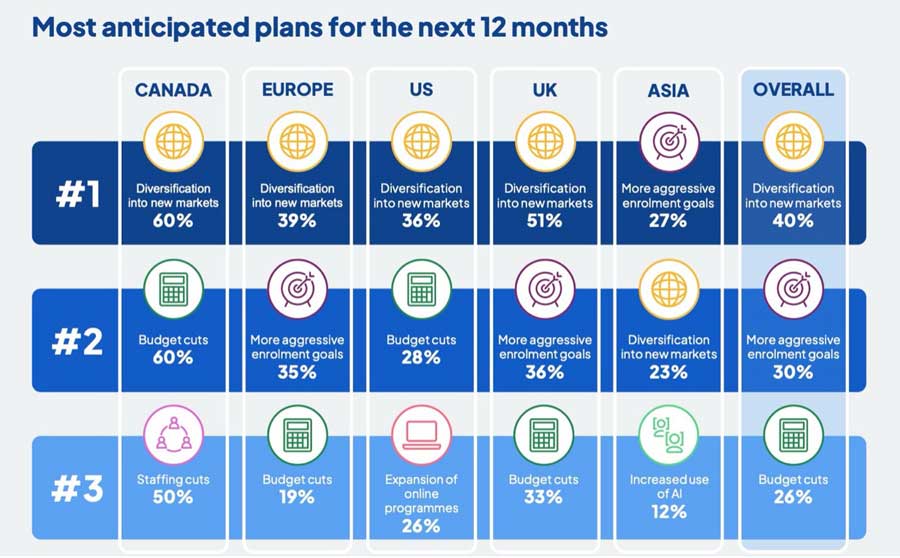 Universities in Canada and the US are the most intent on diversifying (60% and 51%, respectively), perhaps because risk mitigation is more of a concern as Chinese and Indian demand has become more unpredictable.