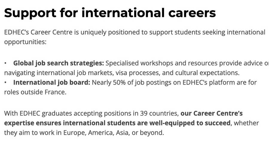 In France, the EDHEC Business School doesn’t just offer career services – it offers personalised career services for students focusing on one sector or profession. Their website says:
